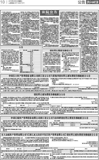 中国东方资产管理股份有限公司浙江省分公司与黄旭丹债权转让通知暨债务催收联合公告