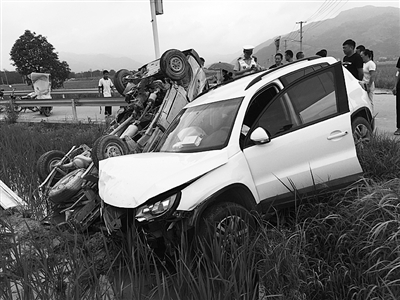 近日,平阳县永乐西路高桥村路段发生一起交通事故。周某驾驶白色小型客车未按减速让行线指示让行,撞上了一辆小型货车,两车相撞后双双翻进了路边农田里,所幸无人员受伤。交警部门经调查认定,周某负全责。
