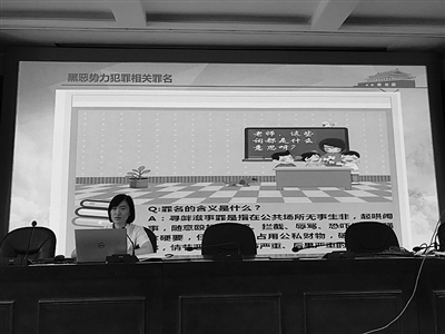 近日,平湖市法院审管办法官应邀为当湖街道120余名社区服刑人员作了“开展扫黑除恶专项斗争 创造安全稳定社会环境”专题讲座。讲座围绕学习《关于开展扫黑除恶专项斗争的通知》、了解重点打击的12种黑恶势力、解读黑恶势力犯罪相关罪名、法官善意提醒四个方面,结合典型案例释法明理,帮助社区服刑人员学法知法。通讯员 游情天