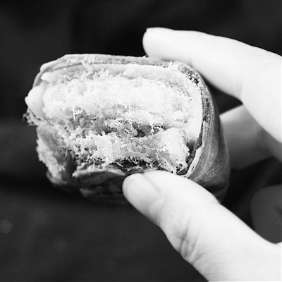 “棉花根本就嚼不烂,下咽更是不可能,就跟吃一团线一样,而肉松嚼着嚼着就化了,嘴里越来越少。”阿涛说,这是他第一次吃棉花,很容易就能辨别出棉花和肉松的区别。