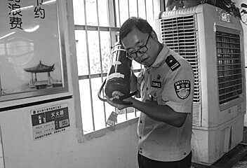 | 民警王土华在检查灭火器 |