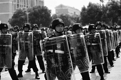 昨天下午,嘉兴市南湖区公安分局在国防教育中心举行应急预备队和应急专业队演练,300名队员在规定时间内从各个派出所赶到演练现场,并进行实地训练。在进行部队集结和着装携装现场督察后,队员们开始进行警棍、盾牌的现场训练。