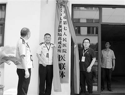 近日,绍兴市九里强制隔离戒毒所与绍兴文理学院附属医院、绍兴市第七人民医院,举行医联体建设签约揭牌仪式,重点在医疗技术帮扶、医疗人才培养、远程医疗诊断与专科建设、医疗绿色通道等方面进行深入合作,从而为促进戒毒人员身心健康、提高戒断率提供有力保障。通讯员 詹舜卿