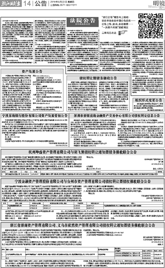 杭州坤盛资产管理有限公司与胡飞熊债权转让通知暨债务催收联合公告