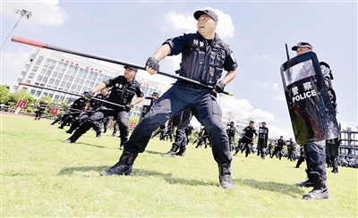 现场,来自全省11个市的22支应急维稳力量,共计2000名特警队员列阵而立、气势磅礴。40辆装甲车、2辆水炮车、25辆运兵车、50辆警用摩托车、3架直升机和1000余件特种装备陈列周围,场面震撼。特警队员开展了直升机索降、警用摩托车驾驶、擒敌拳、藤棍操、防暴盔甲队等课目训练,以昂扬的斗志、顽强的作风、严明的纪律、精湛的技能,充分展示了浙江公安是一支忠诚可靠、勇挑重担、本领过硬、敢打必胜的精兵劲旅。通讯员 董文骐 陈谊 文 周尔博 摄