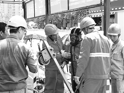 “各位业主,发生煤气泄漏,请大家在家关好门窗,注意安全,不要用明火,不要吸烟。”在塌方地附近的河滨公寓楼下,一位社区工作人员拿着高音喇叭提醒居民。