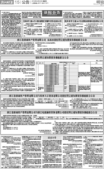 浙江省浙商资产管理有限公司与浙江电联融资担保有限公司债权转让通知暨债务催收联合公告