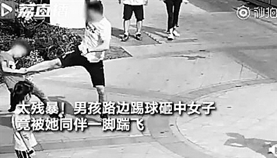 因同行女伴被球踢中 江苏一男子飞踹踢球男孩