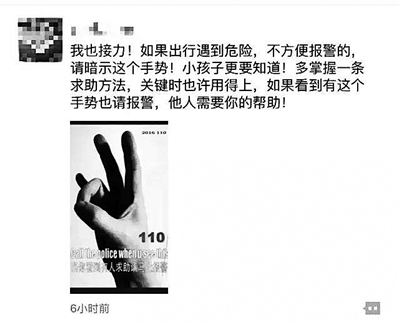 网传“110报警手势”被警方辟谣: 不靠谱,还会耽误自救时机