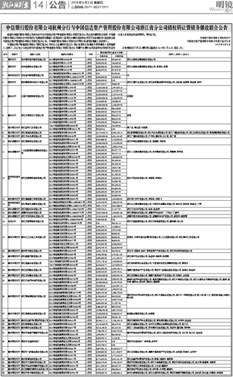 中信银行股份有限公司杭州分行与中国信达资产管理股份有限公司浙江省分公司债权转让暨债务催收联合公告