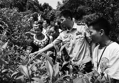 近日,浙江出入境边检总站组织对口扶贫的广西三江侗族自治县的茶农,开展为期1周的茶叶技能培训。图为5日上午,80余名茶农来到德清县双丰茶厂,实地参观学习茶叶加工技艺。