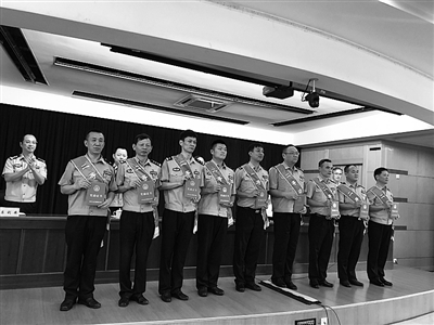 9月5日,省公安厅政治部到杭州市公安局举行战时集中授奖仪式,隆重表彰一批在“践行新使命 忠诚保大庆”工作中涌现出来的先进典型个人和集体。受到此次表彰的个人一等功臣2名,个人二等功臣14名,集体二等功4个。