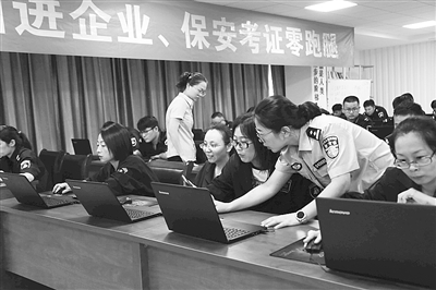 为了更好地服务辖区内保安企业,提升保安员的业务素质,9月6日,嘉兴市南湖区公安分局联合职业技能培训公司,携带设备上门,为嘉兴安邦护卫有限公司送上了一堂有针对性的培训,并在培训结束后当场进行了保安员上岗考试,考试合格的当场发放《保安员证》,实现了保安员考证“最多跑一次”向“零跑腿”的飞跃,得到了企业负责人及保安员们的称赞。
