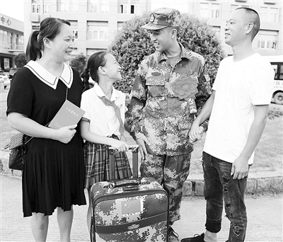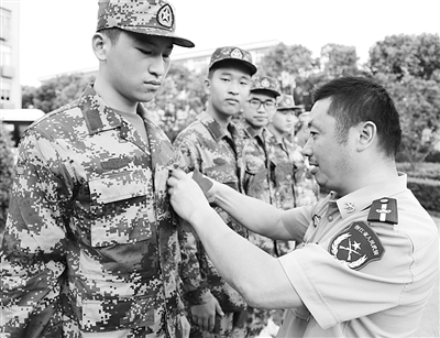 穿上新军装,戴上大红花,9月10日傍晚,玉环市龙溪镇政府大院里,5名新兵在亲朋好友、家乡领导、退伍老兵的叮咛祝福下,准备踏上军旅,到部队建功立业。