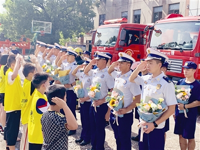 日前,义乌市多所学校组织学生到市消防救援支队,与“烈火英雄”面对面,零距离体验消防工作、学习消防知识。现场还开展了《写给义乌市烈火英雄们的一封信》活动,孩子们真诚地用笔写下对消防员叔叔的崇高敬意,并向英雄们献上了美丽的花束。