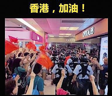 9月14日,爱国爱港人士唱国歌遭暴徒袭击受伤,香港警察赶到后带走多名暴徒,市民高喊“警察加油!”香港加油!