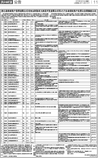 浙江省浙商资产管理有限公司对舟山阿鲁亚大酒店开发有限公司等47户企业债权资产处置公告暨催收公告