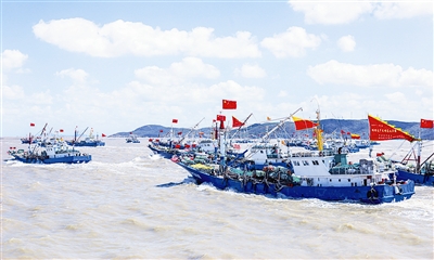9月16日中午,东海结束为期4个半月的伏季休渔,舟山2360艘拖网、帆张网渔船以及配套辅助渔运船等纷纷从渔港扬帆起航。
