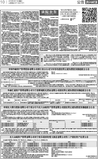 中国光大银行股份有限公司宁波分行与光大金瓯资产管理有限公司债权转让通知暨债务催收联合公告