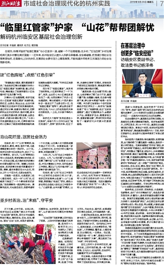 浙江法制报 市域社会治理现代化的杭州实践 00007 “临里红管家”护家 “山花”帮帮团解忧 2019-09-20 2 2019年09月20日 星期五