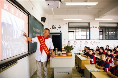 看到这一幕,老人的脸上绽开了笑容,身形矫健地走进了长兴县第四小学一间教室,给学生们讲述当年自己的红色经历及我国国防和军队现代化70年取得的辉煌成就,让学生们学习红色精神、传承红色基因,让红色印记代代相传。岁月的沟壑虽无情地爬满了老人的脸颊,但他对生活的热情,对教学的激情依旧如初。