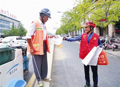 “清晨7点多,我们30多名队员就来到了市民广场,有序领取报纸后奔赴金陵路、人民路、解放路等长兴城区主要道路进行派发。”长兴老年骑行协会的骑友老高身着红马甲,向路上行人、沿街商铺发放《平安南太湖》的同时,向市民解读《平安南太湖》上的法制宣传内容,普及防范安全知识,鼓励居民群众参与到平安建设中来。