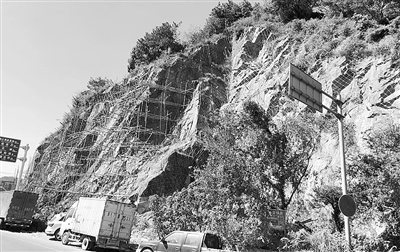 离开企业,暗访组驱车来到104国道鹅湖段的鹅颈头地质灾害隐患点,这处被列入2019年省级道路交通事故多发点整治计划的隐患点,现场情况也让暗访人员分外揪心。虽然远远望去,隐患点的整治施工已处于尾声,靠近道路一侧的裸露山体也已安装了防护网,仅有一半脚手架还未拆除,但驱车靠近后却可看到,隐患点山体的下方横七竖八地停满了车,而马路的对面就是交警中队。