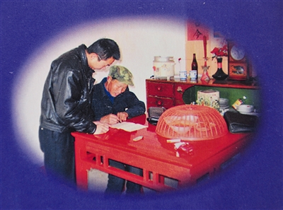 | 汤国华(左)办案时 |