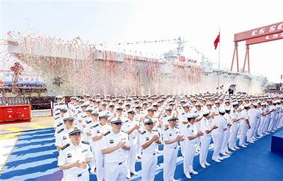 国家有关部委、中央军委装备发展部、海军和上海市、中国船舶工业集团有限公司领导,以及科研建造人员、部队官兵代表等参加仪式。