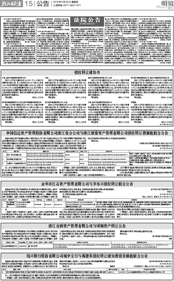 中国信达资产管理股份有限公司浙江省分公司与浙江浙萧资产管理有限公司债权转让暨催收联合公告