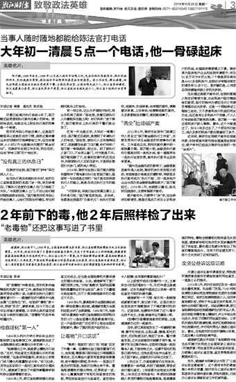 把手机号码公布给当事人,这是陈万敏很早以前就形成的习惯,虽然这意味着业余时间随时可能奉献给工作,但在他看来,8小时以外也是解决问题的“黄金时间”。在瑞安市法院工作多年,岗位在变,但他“拼命三郎”的个性没变。