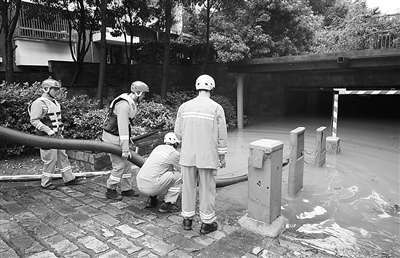 “医院绝对不能断电,否则后果不堪设想。”了解情况后,刘力立即带着队员们赶到医院,用排水车和手抬泵一起为医院进行紧急排水作业。消防员每隔一段时间就要下水清理一下排水口,以免排水口因杂物过多而发生堵塞。直到现场水位稳步下降后,刘力这才放心地留下排水车和手抬泵继续排水,自己又带着部分队员马不停蹄地赶往下一个现场。