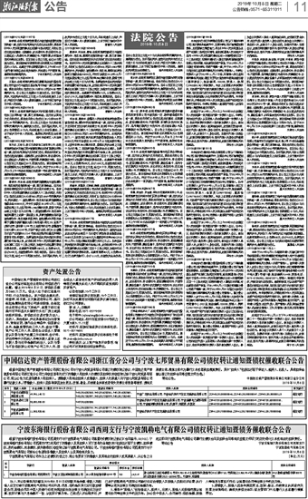 中国信达资产管理股份有限公司浙江省分公司与宁波七邦贸易有限公司债权转让通知暨债权催收联合公告