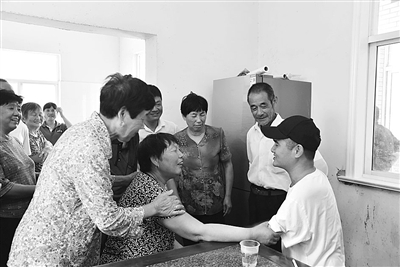 顺着一大家子的指引,车子慢慢地开进了村子里。一下车,黄富英就一把抱住了栗永才。“这是我的孩子啊,妈妈总算又见到你了。”进了屋后,她的手自始至终紧紧拉着栗永才,一刻也不肯松开。