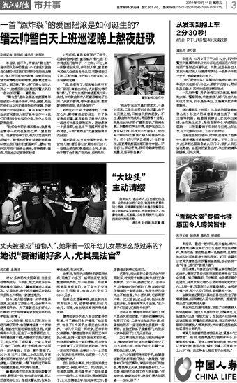 浙江法制报 市井事 00003 缙云帅警白天上班巡逻晚上熬夜赶歌 2019-10-11 2 2019年10月11日 星期五