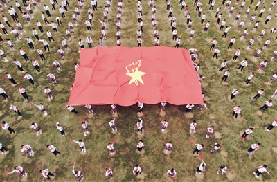 10月11日,德清县乾元镇中心小学开展“队旗下我成长”活动,1000多名少先队员通过与队旗合影、歌唱祖国等方式,喜迎中国少年先锋队建队70周年。