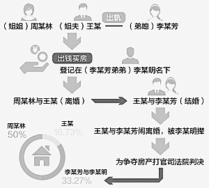 2003年,王、李二人婚外情被弟弟周某明察觉,李某芳随即与周某明离婚。为补偿李某芳,王某想购买一套房产供她居住,并承诺会尽快与周某林离婚。
