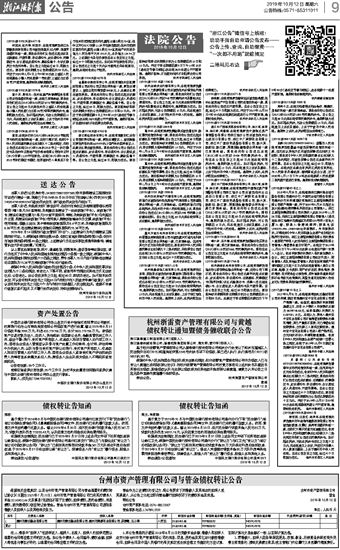 台州市资产管理有限公司与管金债权转让公告