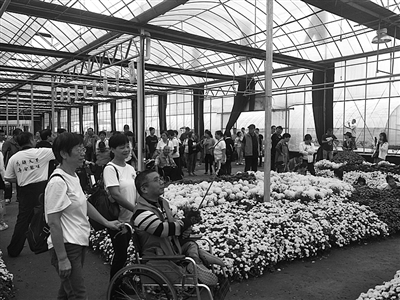 10月13日,绍兴慈联善天下志愿服务队的爱心义工组织40多名肢体残疾人和聋哑人,走出家门,游览平水海丰花园,共同欣赏秋天的美景。