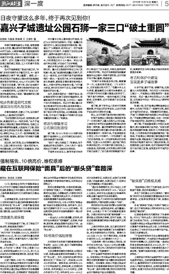 嘉兴子城遗址公园石狮一家三口“破土重圆”