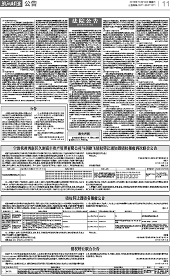 宁波杭州湾新区久润富丰资产管理有限公司与胡建飞债权转让通知暨债权催收再次联合公告