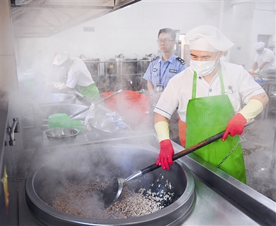 11时,“炊事班”上午的工作基本完成,叶喜明将4份饭菜的留样放入冰箱,民警带着他们检查了整个食堂,确认所有电气设备和炊具都已恢复原状。此时,前来就餐的戒毒人员开始列队进入餐厅,准备享用“炊事班”忙碌了一上午的成果。