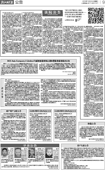 BCC Asia Company 3 Limited与戚鲤崟债权转让通知暨债务催收联合公告