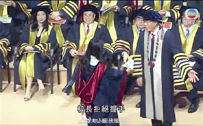 香港理工大学校长 拒与戴口罩毕业生握手