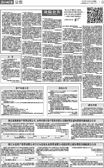 浙江省浙商资产管理有限公司、金华市浙丰资产投资有限公司债权转让通知暨债务催收联合公告
