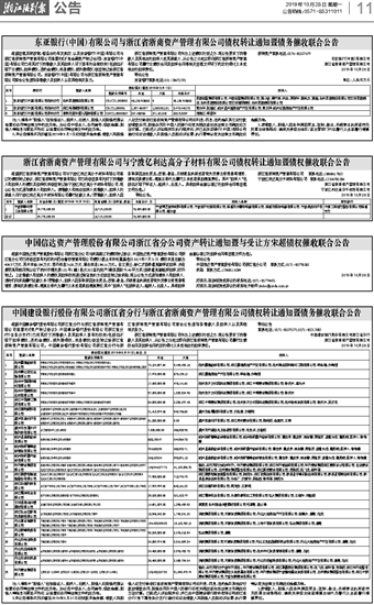 东亚银行(中国)有限公司与浙江省浙商资产管理有限公司债权转让通知暨债务催收联合公告
