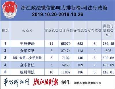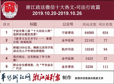 本周“宁波普法”人气继续涨涨涨,直接领跑司法行政榜单。热文榜中,“宁波普法”通过全市第三届“十大法治人物”选树活动,遥遥领先,收获6.4万阅读数。建设更高水平法治宁波,“宁波普法”砥砺前行。