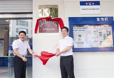 | 2019年9月26日,台州首家巡回智慧法庭在黄岩区院桥综治中心揭牌成立 |