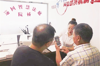 目前,台州已全面建立人民调解指导员制度,由巡回智慧法庭庭长担任人民调解指导员,通过对化解疑难复杂纠纷和行业性专业性矛盾纠纷开展专项指导,提高调解成功率。从第一家巡回智慧法庭挂牌设立到最后一家揭牌,短短1个半月不到,已有41起矛盾纠纷调解成功。