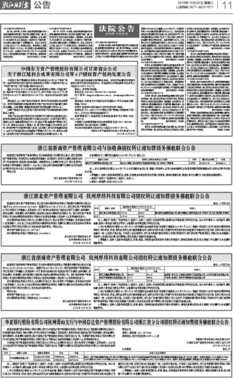 浙江省浙商资产管理有限公司 杭州厚炜科技有限公司债权转让通知暨债务催收联合公告